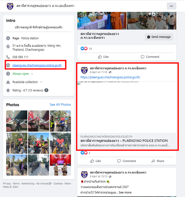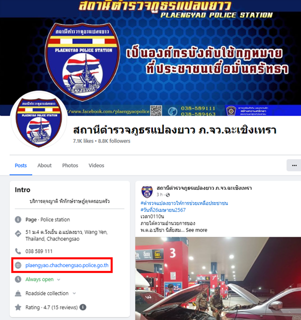 ช่องทางเผยแพร่เว็บไซต์หลักของสถานีตำรวจภูธรแปลงยาว