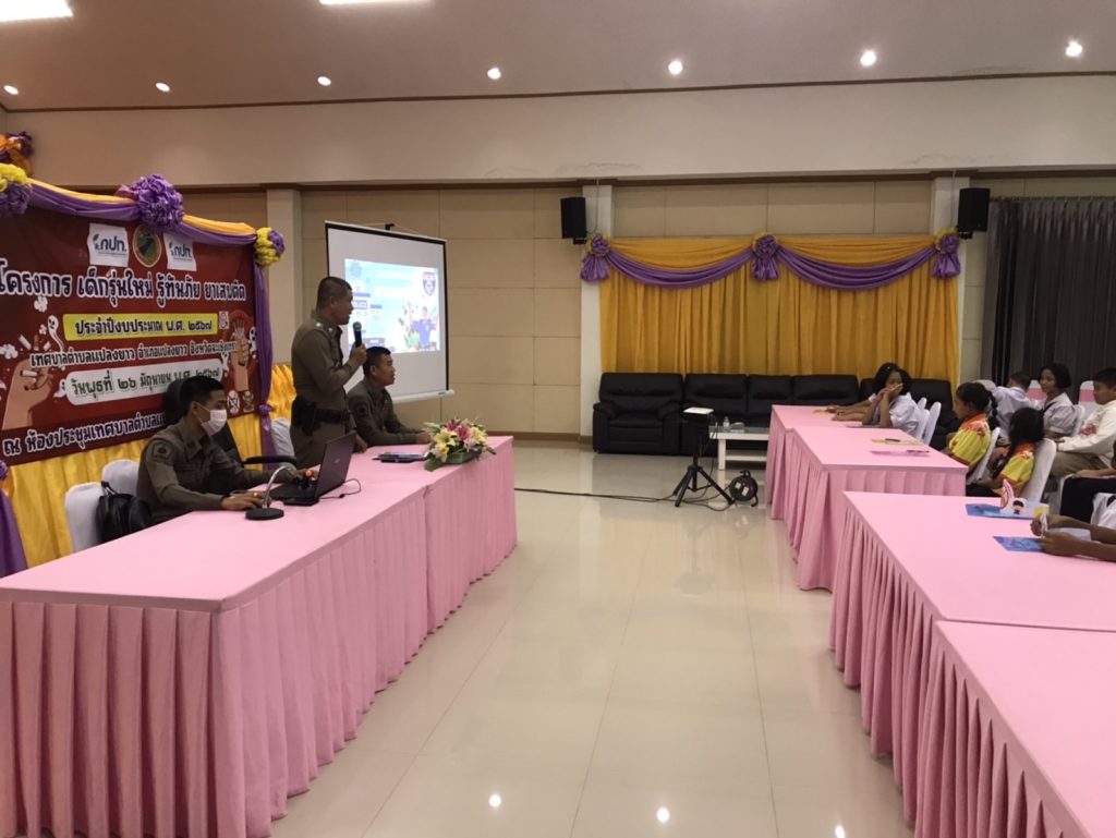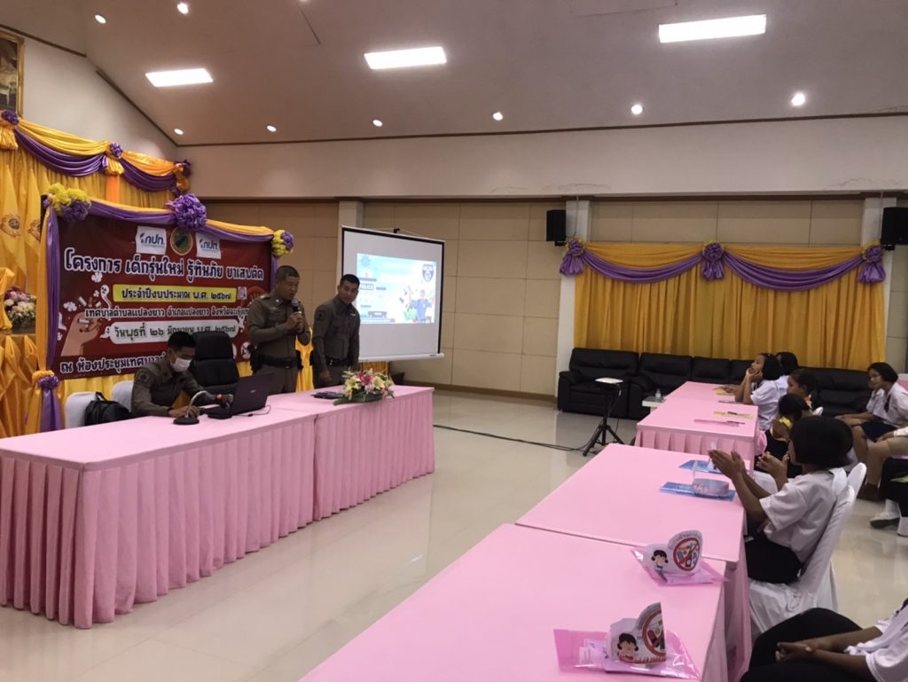 พร้อมชุดชุมชนยั่งยืน สภ.แปลงยาว ให้ความรู้ด้านยาเสพติด ณ เทศบาลตำบลแปลงยาว